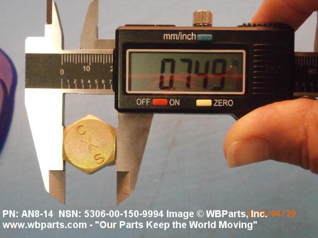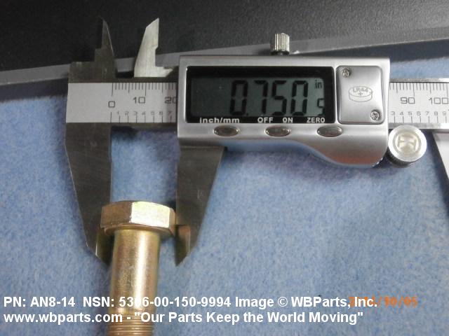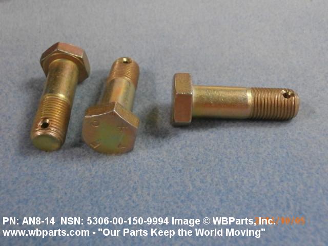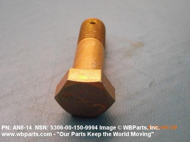 Part Alternates: AN814, AN8-14, 8537765, 5306-00-150-9994, 00-150-9994, 5306001509994, 001509994