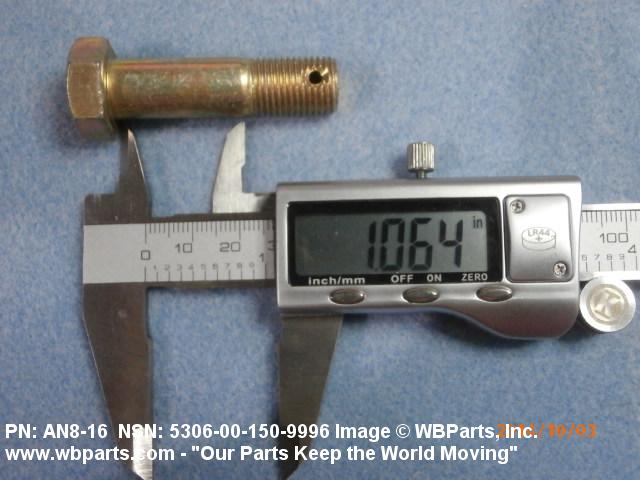 Part Alternates: AN816, AN8-16, 5306-00-150-9996, 00-150-9996, 5306001509996, 001509996
