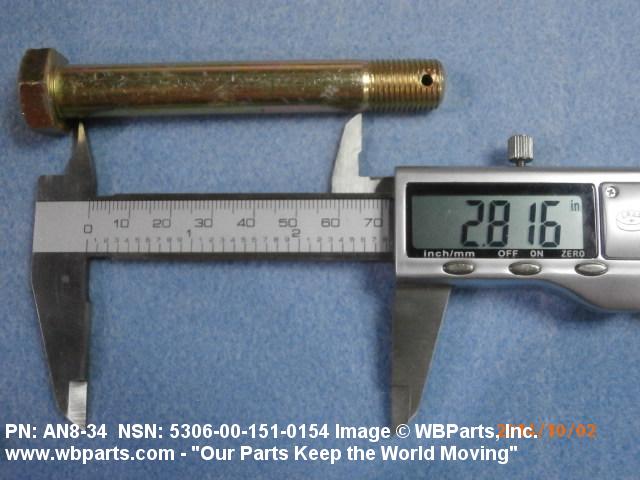 Part Alternates: AN834, AN8-34, 5306-00-151-0154, 00-151-0154, 5306001510154, 001510154