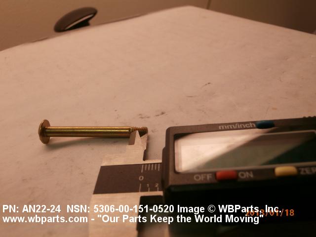 Part Alternates: AN2224, AN22-24, B6812, 5306-00-151-0520, 00-151-0520, 5306001510520, 001510520