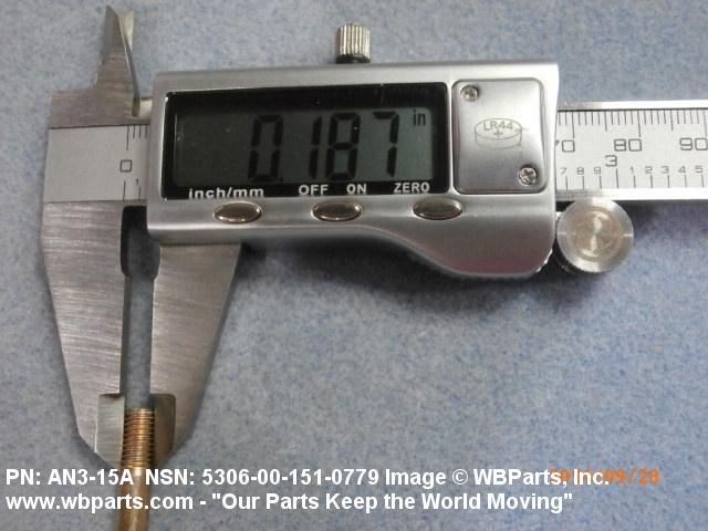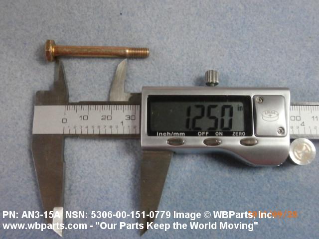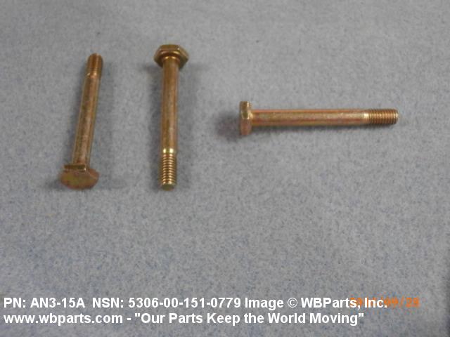5306-00-151-0797 An externally threaded fastener designed for insertion through holes in assembled parts and normally intended to be tightened or released by torquing a nut. The threaded and unthreaded portions are both of one nominal diameter of 0.190 inch (5 mm) or larger. The head is not designed to be held or driven with an inserted driver or by the thumb and fingers. A locking feature may be incorporated in the design of the head or threads. Head dimensions and sizes of threaded and unthreaded portions shall conform to internationally recognized fastener standards. For items having a grip length portion machined to a tolerance of 0.0015 inch (0.038 mm) or less, BOLT, SHEAR. See also SCREW, CAP, HEXAGON HEAD and SCREW, MACHINE.