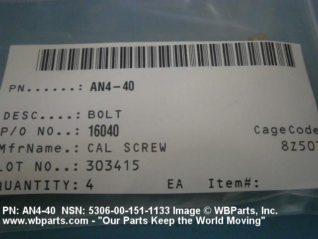 | AN4-40 | 88044 | AERONAUTICAL STANDARDS GROUP DEPT OF NAVY AND AIR FORCE |