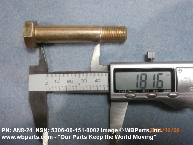 5306-00-151-1290 An externally threaded fastener designed for insertion through holes in assembled parts and normally intended to be tightened or released by torquing a nut. The threaded and unthreaded portions are both of one nominal diameter of 0.190 inch (5 mm) or larger. The head is not designed to be held or driven with an inserted driver or by the thumb and fingers. A locking feature may be incorporated in the design of the head or threads. Head dimensions and sizes of threaded and unthreaded portions shall conform to internationally recognized fastener standards. For items having a grip length portion machined to a tolerance of 0.0015 inch (0.038 mm) or less, BOLT, SHEAR. See also SCREW, CAP, HEXAGON HEAD and SCREW, MACHINE.
