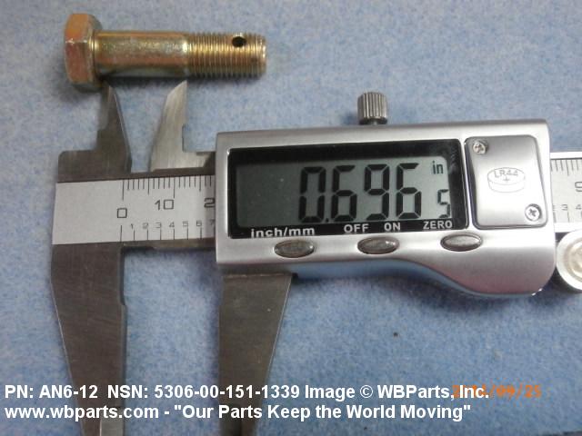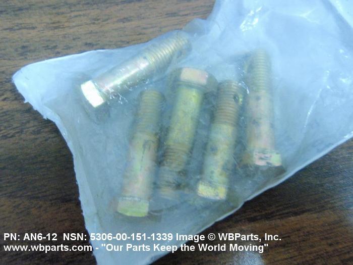 Part Alternates: AN612, AN6-12, 5306-00-151-1339, 00-151-1339, 5306001511339, 001511339