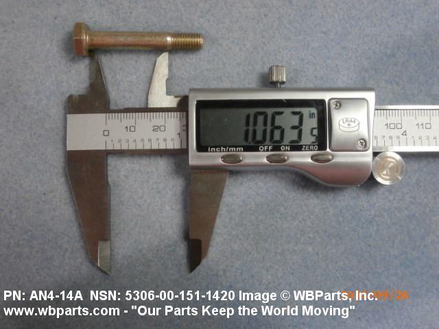 Part Alternates: AN4148, AN4-148, AN414A, AN4-14A, 2010300, 400 009, 400009, 5306-00-151-1420, 00-151-1420, 5306001511420, 001511420