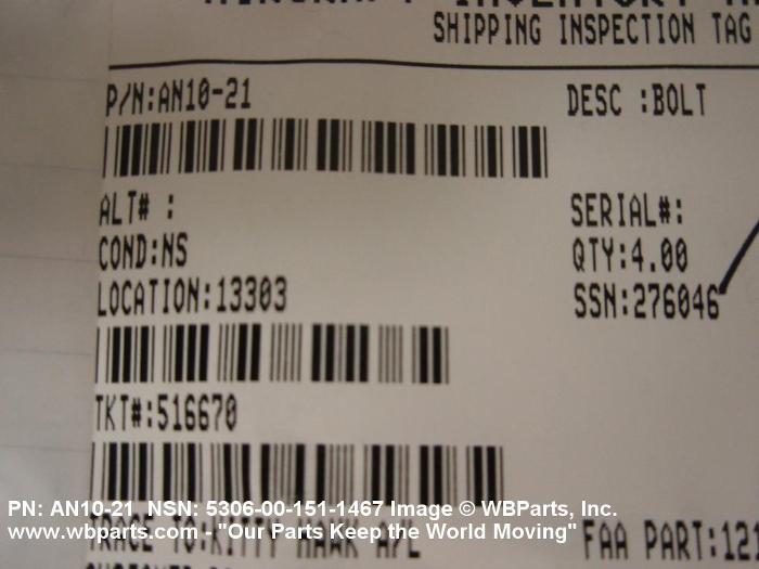NSN 5306-00-151-1467 AN1021, AN10-21, 00-151-1467