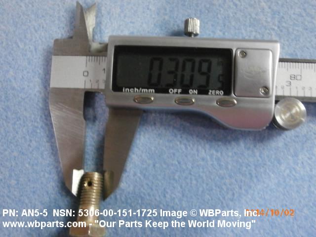 Part Alternates: AN5-5, AN55, 5306-00-151-1725, 00-151-1725, 5306001511725, 001511725