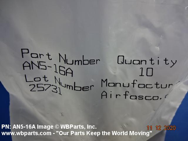 Part Alternates: AN516A, AN5-16A, 401194, 5306-00-151-2625, 00-151-2625, 5306001512625, 001512625