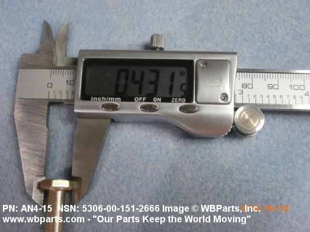 Part Alternates: AN415, AN4-15, 2018279, 400 110, 400110, 5306-00-151-2666, 00-151-2666, 5306001512666, 001512666
