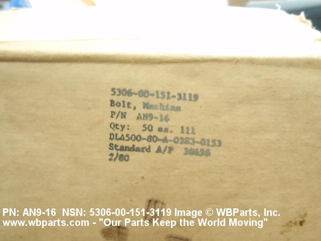 Part Alternates: AN916, AN9-16, 5306-00-151-3119, 00-151-3119, 5306001513119, 001513119