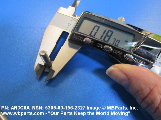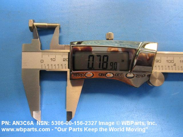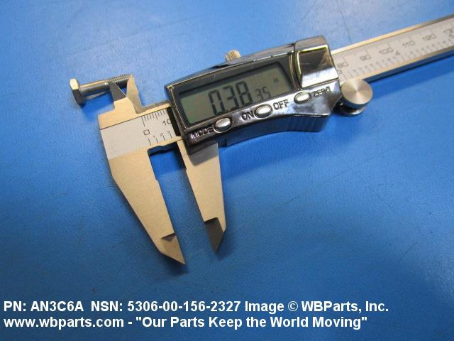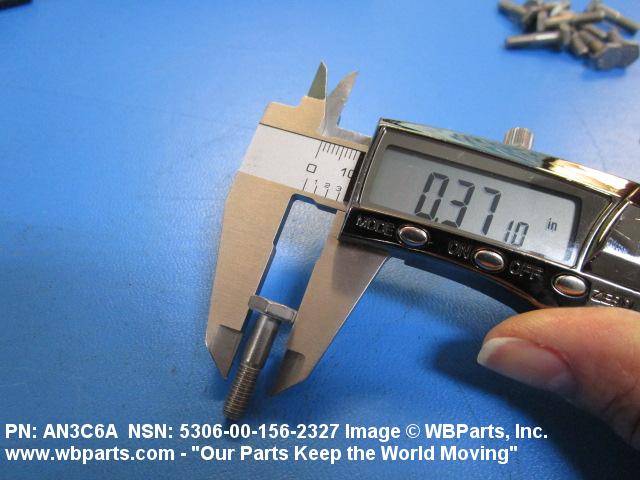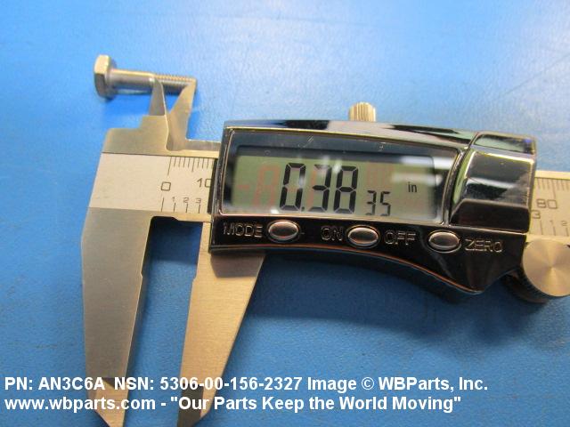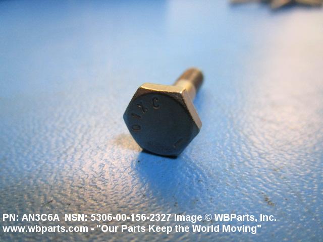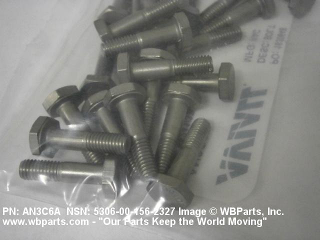 5306-00-156-2327 An externally threaded fastener designed for insertion through holes in assembled parts and normally intended to be tightened or released by torquing a nut. The threaded and unthreaded portions are both of one nominal diameter of 0.190 inch (5 mm) or larger. The head is not designed to be held or driven with an inserted driver or by the thumb and fingers. A locking feature may be incorporated in the design of the head or threads. Head dimensions and sizes of threaded and unthreaded portions shall conform to internationally recognized fastener standards. For items having a grip length portion machined to a tolerance of 0.0015 inch (0.038 mm) or less, BOLT, SHEAR. See also SCREW, CAP, HEXAGON HEAD and SCREW, MACHINE.
