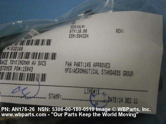 Part Alternates: AN17626, AN176-26, 5306-00-180-0510, 00-180-0510, 5306001800510, 001800510