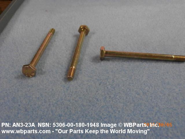 Part Alternates: AN323A, AN3-23A, NASM3 THRU NASM20-AN3-23A, NASM3THRUNASM20AN323A, 2010227, 5306-00-180-1948, 00-180-1948, 5306001801948, 001801948