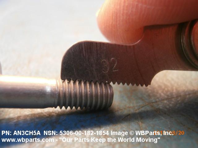 Part Alternates: AN3CH5A, NASM3 THRU NASM20-AN3CH5A, NASM3THRUNASM20AN3CH5A, 639-1136-01, 5306-00-182-1854, 00-182-1854, 5306001821854, 639113601, 001821854