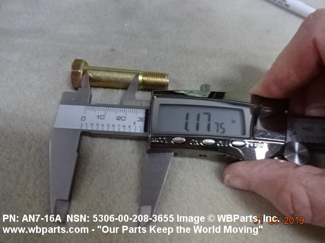 5306-00-208-3655 An externally threaded fastener designed for insertion through holes in assembled parts and normally intended to be tightened or released by torquing a nut. The threaded and unthreaded portions are both of one nominal diameter of 0.190 inch (5 mm) or larger. The head is not designed to be held or driven with an inserted driver or by the thumb and fingers. A locking feature may be incorporated in the design of the head or threads. Head dimensions and sizes of threaded and unthreaded portions shall conform to internationally recognized fastener standards. For items having a grip length portion machined to a tolerance of 0.0015 inch (0.038 mm) or less, BOLT, SHEAR. See also SCREW, CAP, HEXAGON HEAD and SCREW, MACHINE.
