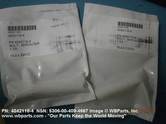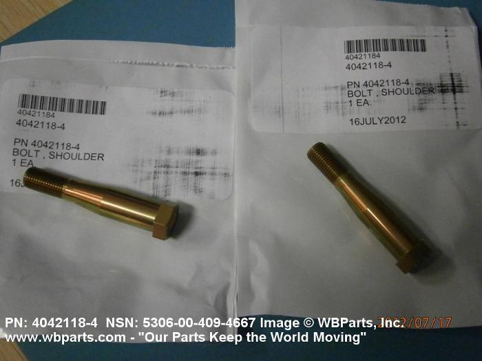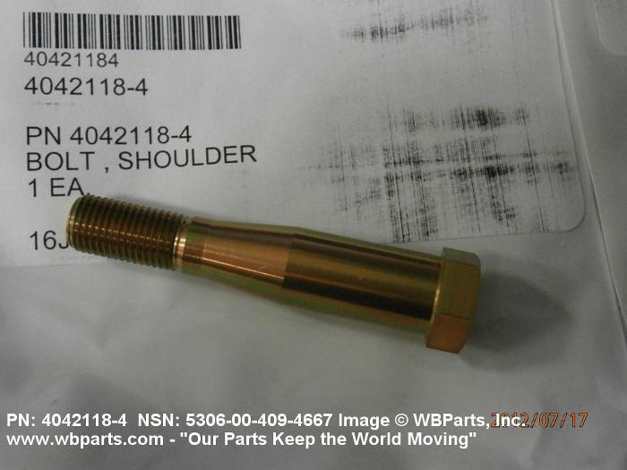 Part Alternates: 40421184, 4042118-4, 5306-00-409-4667, 00-409-4667, 5306004094667, 004094667