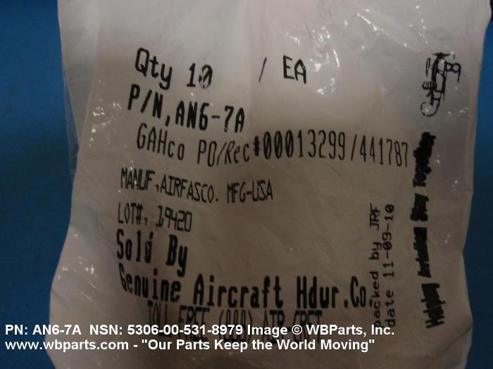 Part Alternates: AN67A, AN6-7A, 803878, 8801743, 5306-00-531-8979, 00-531-8979, 5306005318979, 005318979