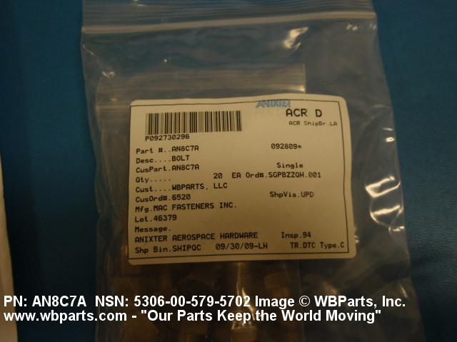 Part Alternates: AN8C7A, 5306-00-579-5702, 00-579-5702, 5306005795702, 005795702