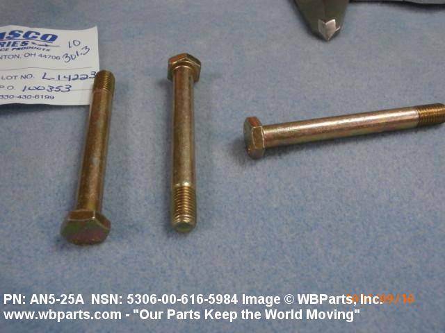 Part Alternates: AN525A, AN5-25A, 5306-00-616-5984, 00-616-5984, 5306006165984, 006165984