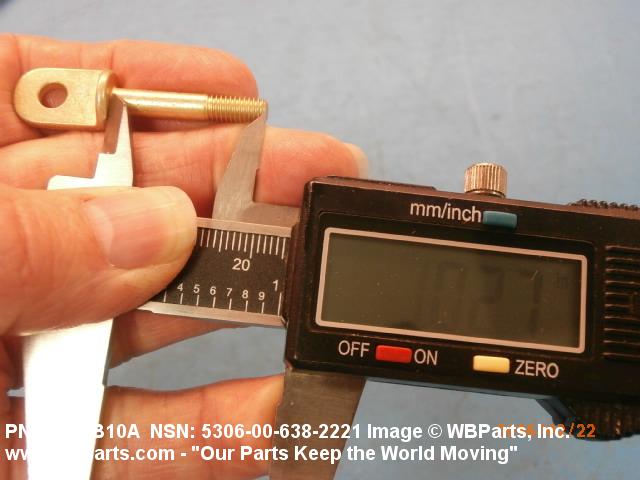 5306-00-638-2221 An externally threaded device whose threaded portion is of one nominal diameter, without a head, but with the unthreaded end either bent more than 225 degrees (3.925 radians) or cast, forged, or punched to resemble an eye. See also BOLT, HOOK. Excludes CONNECTOR, ROD END.