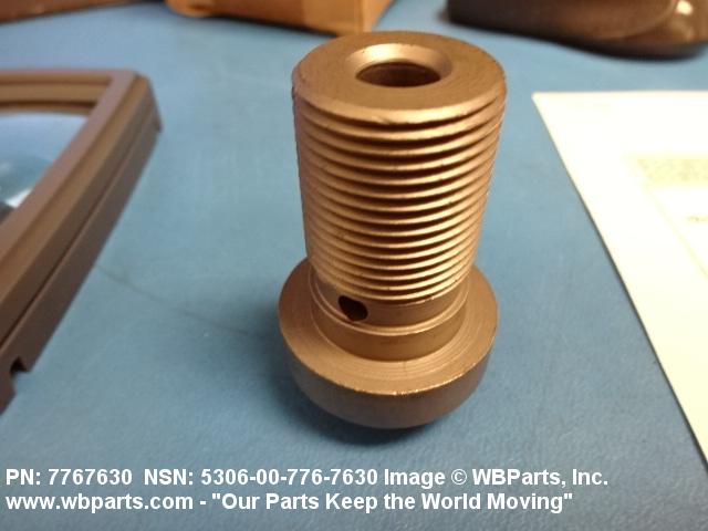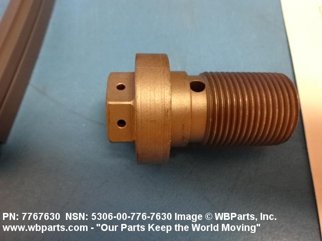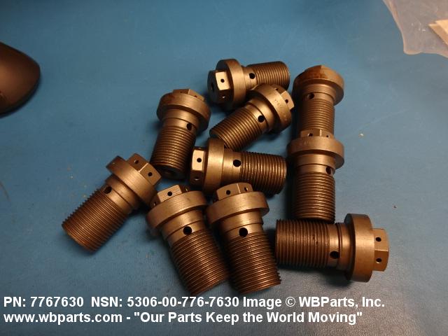 5306-00-776-7630 An externally threaded fastener whose threaded portion is of one nominal diameter, No. 10 (0.190 IN.) (5 mm) or larger. It has a round unthreaded neck or shank all or part of which is of greater diameter than the threaded portion. The head is not designed to be held or driven with an inserted drivers. A locking feature may be incorporated in the design of the head or threads. For items with a thread diameter smaller than No. 10 (0.190 IN.) (5 mm) and those items with an inserted drive head, use SCREW, SHOULDER. For items which are No. 10 (0.190 IN.) (5 mm) or larger in size and are both shouldered and have an externally relieved body, use BOLT, EXTERNALLY RELIEVED BODY. Excludes THUMBSCREW.