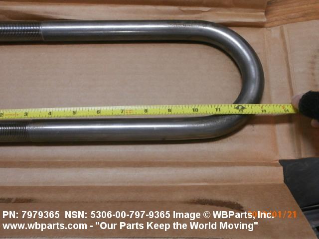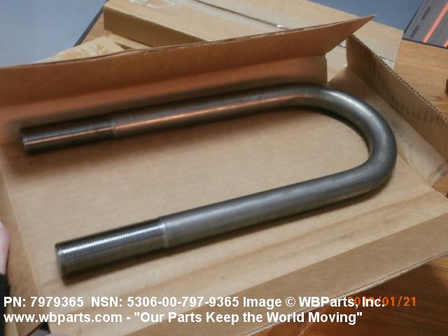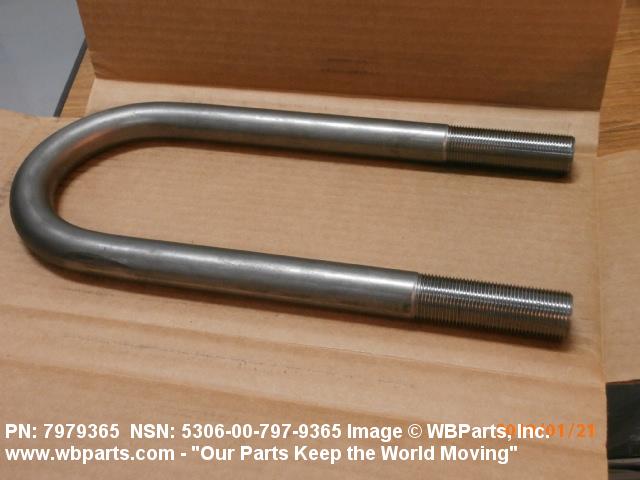 5306-00-797-9365 An externally threaded fastener bent approximately 180 degrees (3.141 radians) in the shape of the letter U and with both ends threaded.