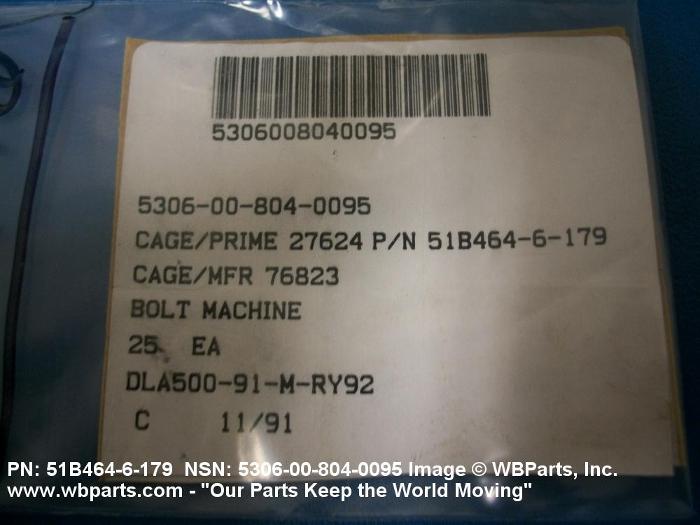 Part Alternates: 51B4646179, 51B464-6-179, 5306-00-804-0095, 00-804-0095, 5306008040095, 008040095