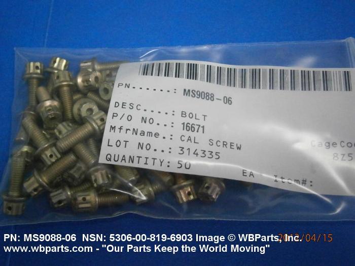 Part Alternates: MS908806, MS9088-06, 5306-00-819-6903, 00-819-6903, 5306008196903, 008196903