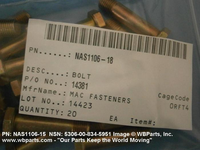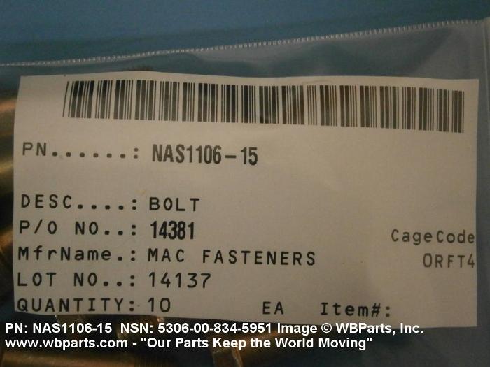 NSN 5306-00-834-5951 NAS110615, NAS1106-15, 00-834-5951