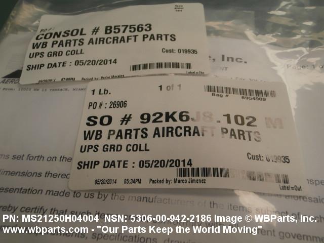 NSN 5306-00-942-2186 MS21250H04004, 721009668800, 10114483