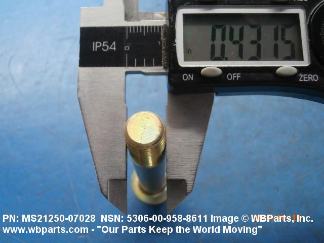 Part Alternates: MS2125007028, MS21250-07028, VFK100G07028, VFK100G-07028, 5306-00-958-8611, 00-958-8611, 5306009588611, 009588611