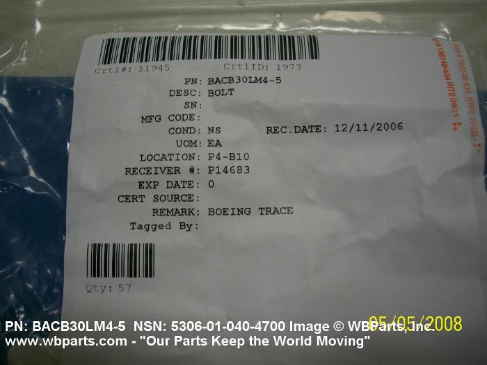 | BACB30LM4-5 | 81205 | THE BOEING COMPANY DBA BOEING |