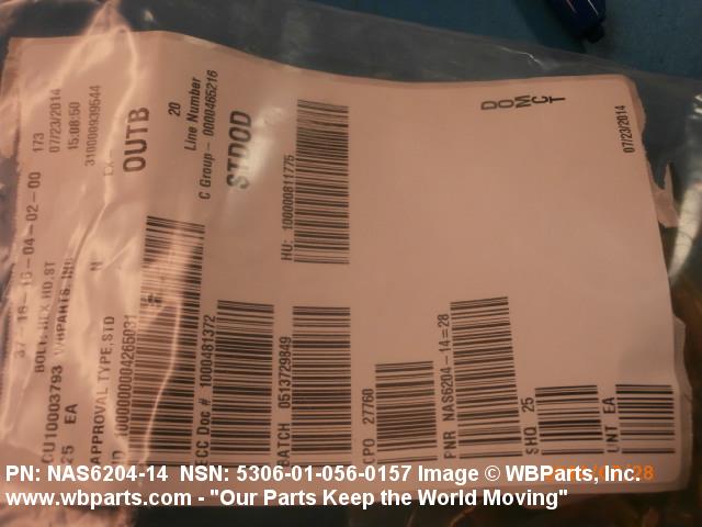 | NAS6204-14 | 80205 | NATIONAL AEROSPACE STANDARDS COMMITTEE AEROSPACE INDUSTRIES |