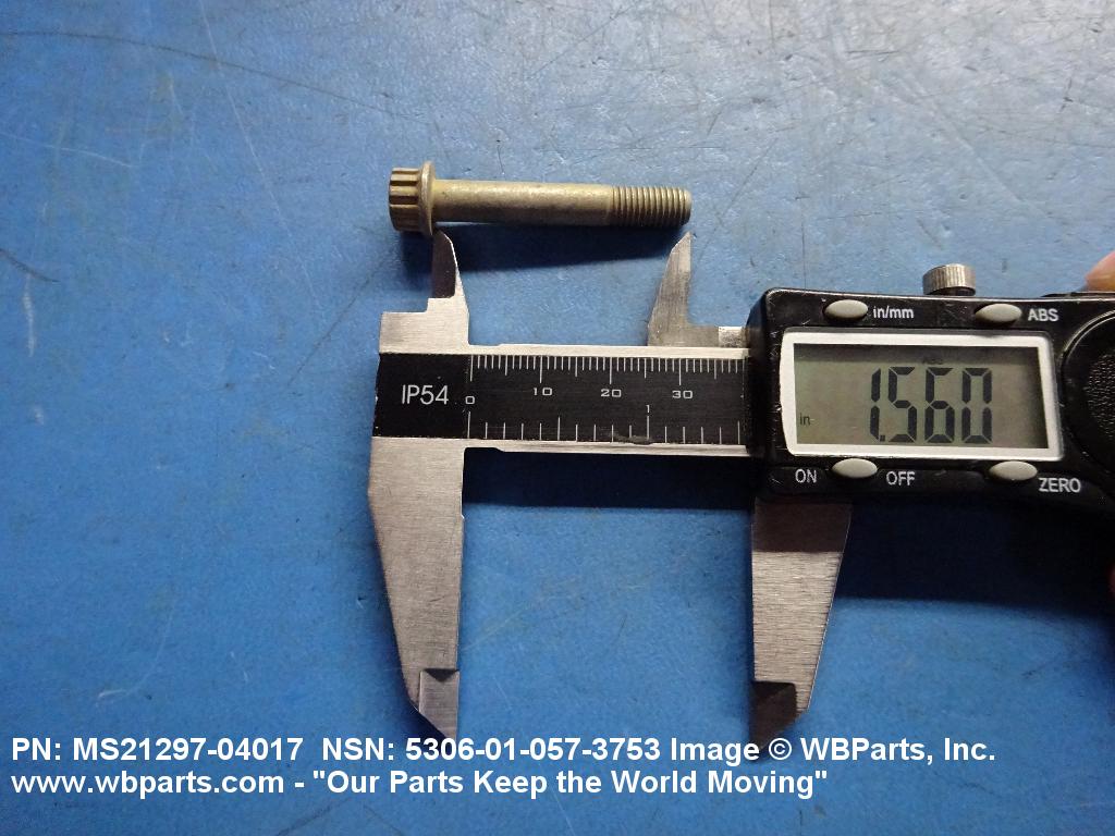 Part Alternates: MS2129704017, MS21297-04017, VFK101G4017, VFK101G4-017, 5306-01-057-3753, 01-057-3753, 5306010573753, 010573753