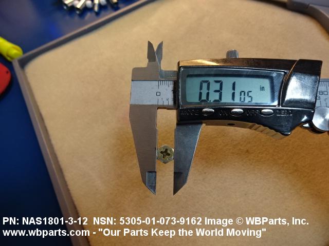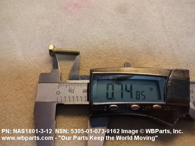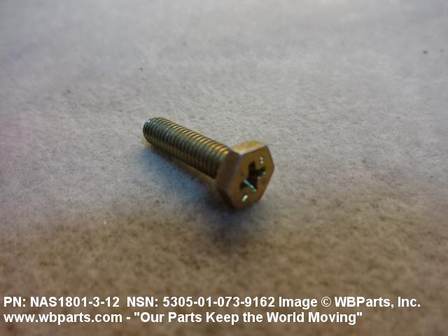 Part Alternates: MS2129705007, MS21297-05007, NAS1801312, NAS1801-3-12 , BACS12CB312, BACS12CB3-12 , VFK101G5007, VFK101G5-007, 10114957 , 5306-01-073-9172, 01-073-9172, 5306010739172, 010739172