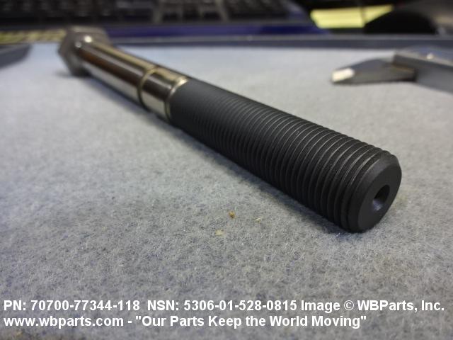 5306-01-087-1926 An externally threaded fastener whose threaded portion is of one nominal diameter, and whose unthreaded portion has been machined or ground in one or more places or over its entire length to a maximum diameter less than the minimum pitch diameter of the thread (excludes undercuts for thread relief). It is No. 10 (0.190 IN.) (5 mm) or larger in size and has a head which is not designed to be held or driven with an inserted driver or designed for rotation by the thumb and fingers. A locking feature may be incorporated in the design of the head or threads. Excludes BOLT, INTERNAL WRENCHING and THUMBSCREW. See also SCREW, EXTERNALLY RELIEVED BODY.