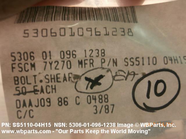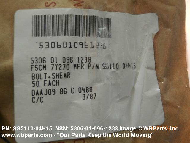 NSN 5306-01-096-1238 SS511004H15, SS5110-04H15, 01-096-1238