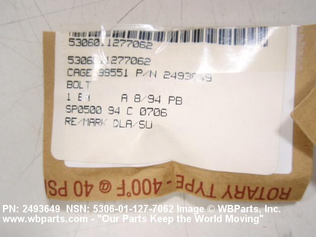 NSN 5306-01-127-7062 10115783 , 2493649, 01-127-7062