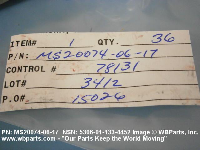 NSN 5306-01-133-4452 MS200740617, MS20074-06-17, 01-133-4452