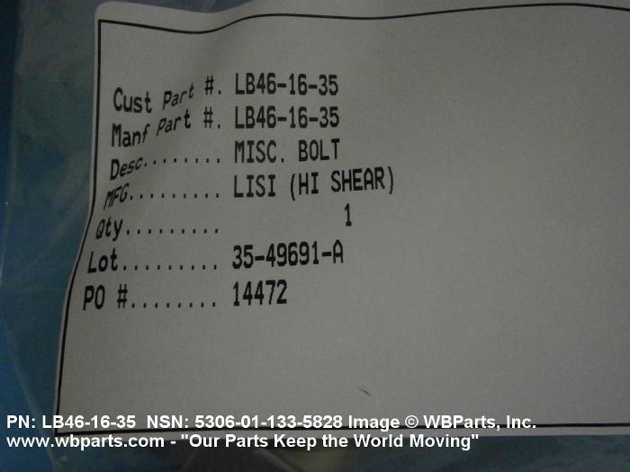 Part Alternates: ST3M833V1635, ST3M833V16-35, LB461635, LB46-16-35, 5306-01-133-5828, 01-133-5828, 5306011335828, 011335828