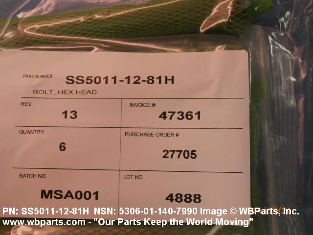 Part Alternates: SS50111281H, SS5011-12-81H, 5306-01-140-7990, 01-140-7990, 5306011407990, 011407990