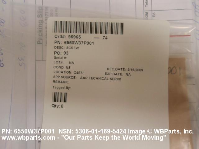 Part Alternates: 6550W37P001, 5306-01-169-5424, 01-169-5424, 5306011695424, 011695424