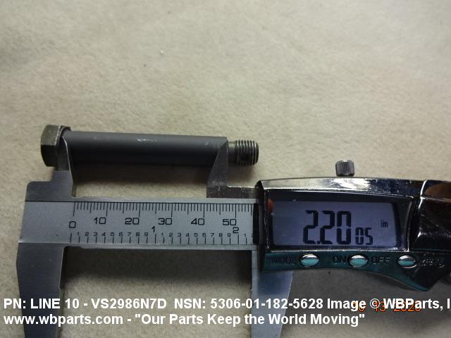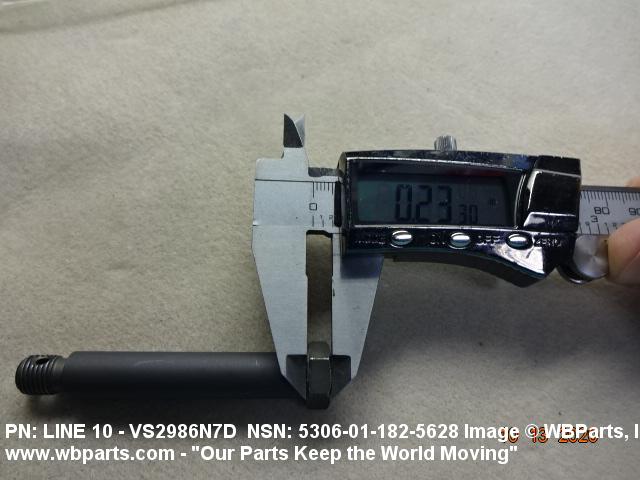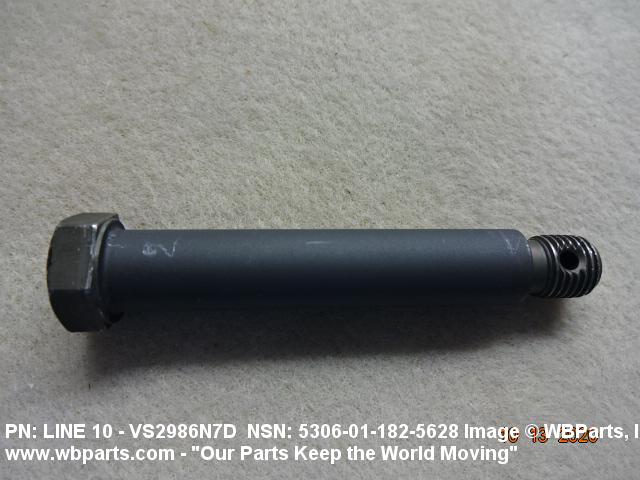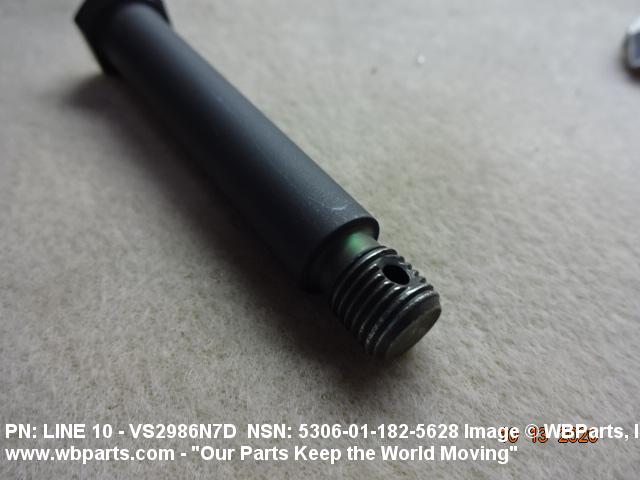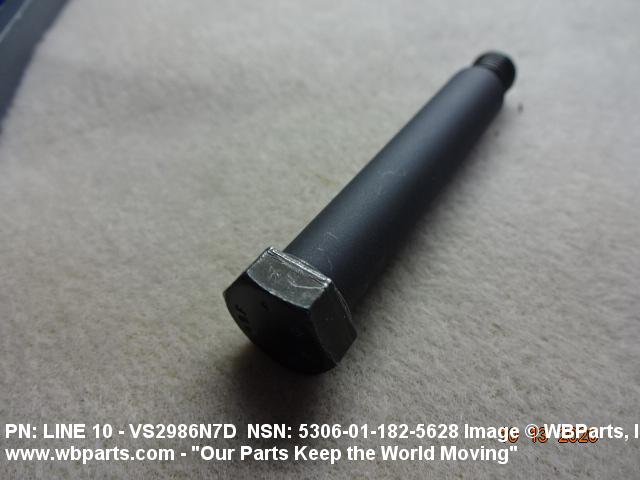5306-01-182-5628 An externally threaded fastener whose threaded portion is of one nominal diameter, No. 10 (0.190 IN.) (5 mm) or larger. It has a round unthreaded neck or shank all or part of which is of greater diameter than the threaded portion. The head is not designed to be held or driven with an inserted drivers. A locking feature may be incorporated in the design of the head or threads. For items with a thread diameter smaller than No. 10 (0.190 IN.) (5 mm) and those items with an inserted drive head, use SCREW, SHOULDER. For items which are No. 10 (0.190 IN.) (5 mm) or larger in size and are both shouldered and have an externally relieved body, use BOLT, EXTERNALLY RELIEVED BODY. Excludes THUMBSCREW.