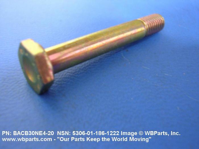 5306-01-186-1222 A high strength, 160,000 pounds per square inch (1100 megapascals) minimum tensile strength externally threaded fastener designed for use in applications involving great shear stress. The head is designed to accommodate an external wrench or driver. The head is not designed to be held or driven with an inserted driver, nor is it designed for rotation by the thumb and fingers. The unthreaded portion is of specific grip length, plated or unplated, and is machined to a tolerance of one thousandth (0.001) of an inch (0.025 mm) or less of a specific diameter for items one inch (25 mm) or less in diameter. Items over one inch (25 mm) in diameter shall have a tolerance of fifteen ten thousandths (0.0015) of an inch (0.038 mm) or less. The nominal major diameter of the threads shall be at least one thousandth (0.001) of an inch (0.025 mm) below the minimum shank diameter, but not below the minimum major diameter for applicable class of fit, as shown in the Screw Thread Standards, FED STD H28 and/or other nationally recognized standards. A locking feature may be incorporated in the design of the head or threads. See BOLT, MACHINE and BOLT, CLEVIS.