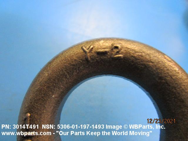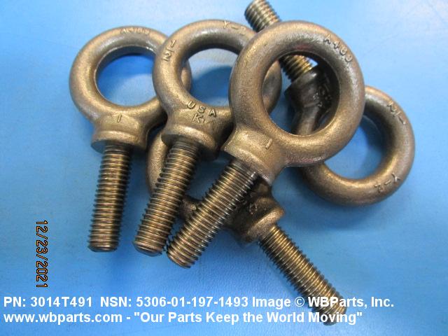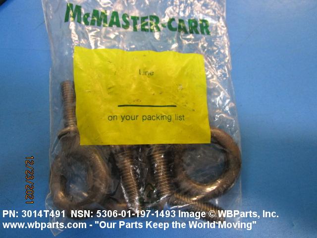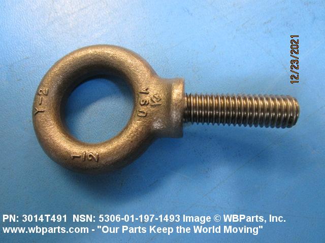 5306-01-197-1493 An externally threaded device whose threaded portion is of one nominal diameter, without a head, but with the unthreaded end either bent more than 225 degrees (3.925 radians) or cast, forged, or punched to resemble an eye. See also BOLT, HOOK. Excludes CONNECTOR, ROD END.
