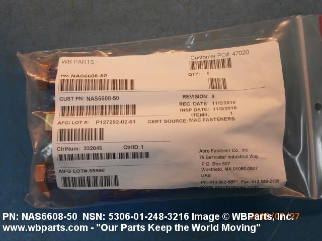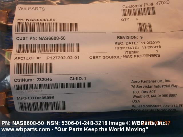 Part Alternates: NAS660850, NAS6608-50, 5306-01-248-3216, 01-248-3216, 5306012483216, 012483216