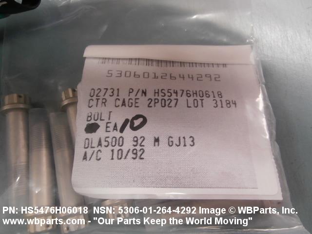 Part Alternates: HS5476H06018, 5306-01-264-4292, 01-264-4292, 5306012644292, 012644292