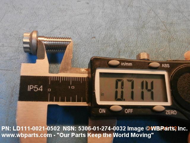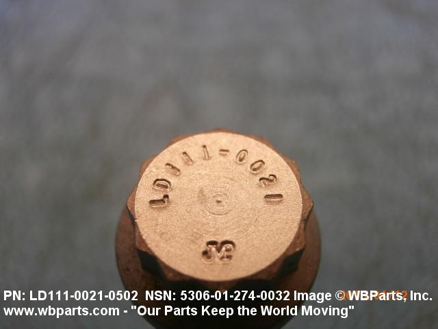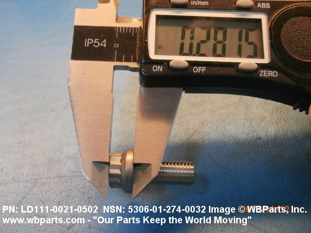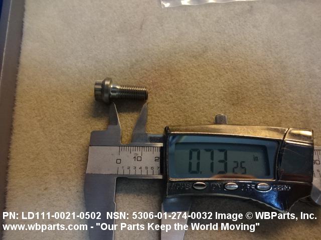 Part Alternates: LD11100210502, LD111-0021-0502, 5306-01-274-0032, 01-274-0032, 5306012740032, 012740032
