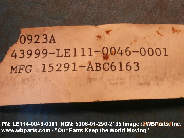 Part Alternates: ABC6163, LE11400460001, LE114-0046-0001, 5306-01-290-2185, 01-290-2185, 5306012902185, 012902185