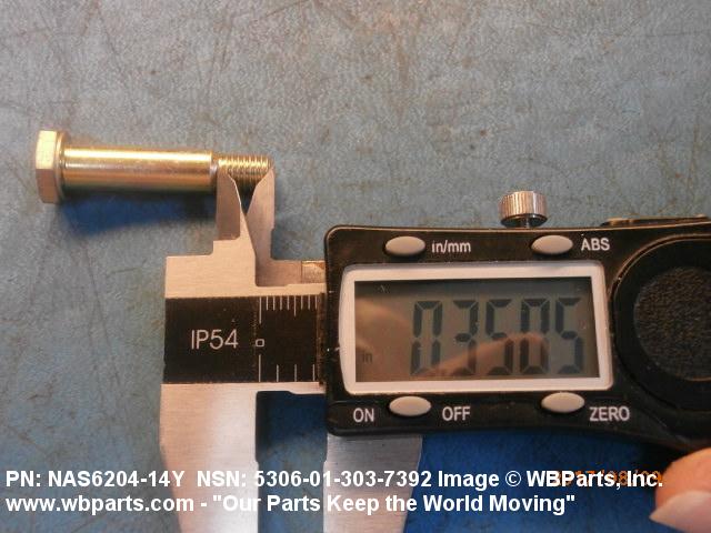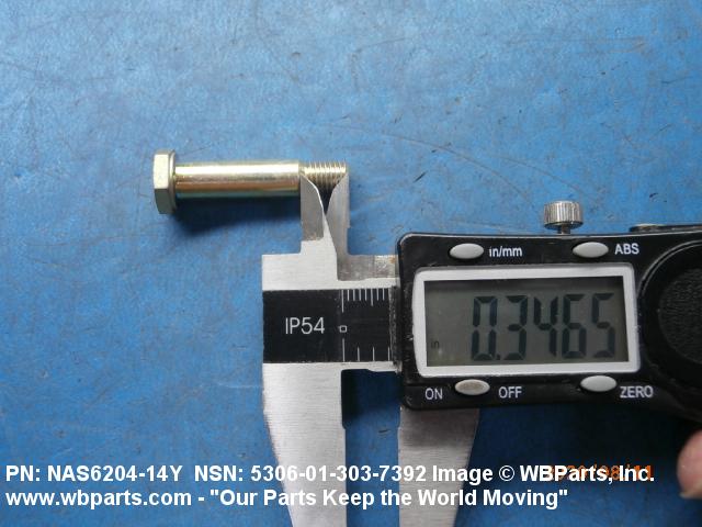 Part Alternates: NAS620414Y, NAS6204-14Y, 5306-01-303-7392, 01-303-7392, 5306013037392, 013037392